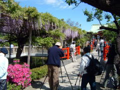 2004年今年の藤は当初の予想よりだいぶ早くなっているようです。今週の半ばからは曇りの日も多くなるそうですが、できればゴールデンウィークまでもって欲しいものですね。皆さんのおでかけ予定が組みやすいように、亀戸天神の藤をできるだけ毎日チェックして報告していきます。